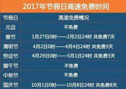 | · 2017年节假日安排与节假日高速免费时间! | 2017/9/8 | |